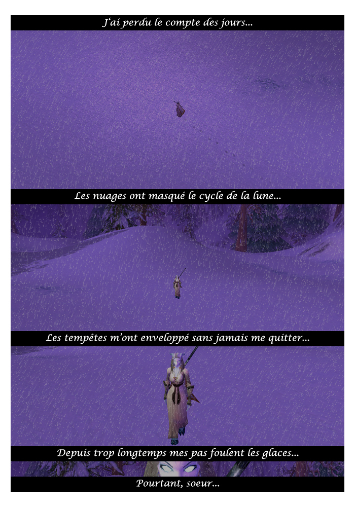 Et cette passion qu’était WoW m’offrait des graphismes, des personnages et des lieux épiques, diversifiés et colorés. Ils sont là mes dessins, toutes ces images que je peux prendre et placer, les voila les bases, je n’avais plus qu’à créer à partir de cette matière tellement riche.